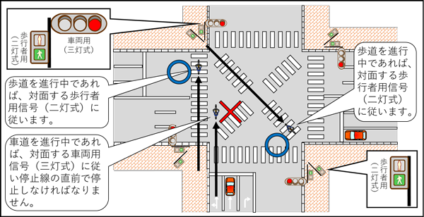 自転車横断帯あるとこは歩行者・自転車専用の信号あるよな