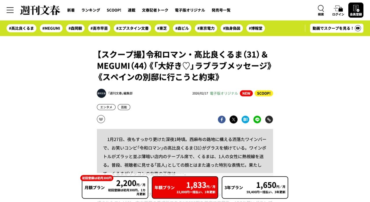 文春の準レギュラーになってんな
