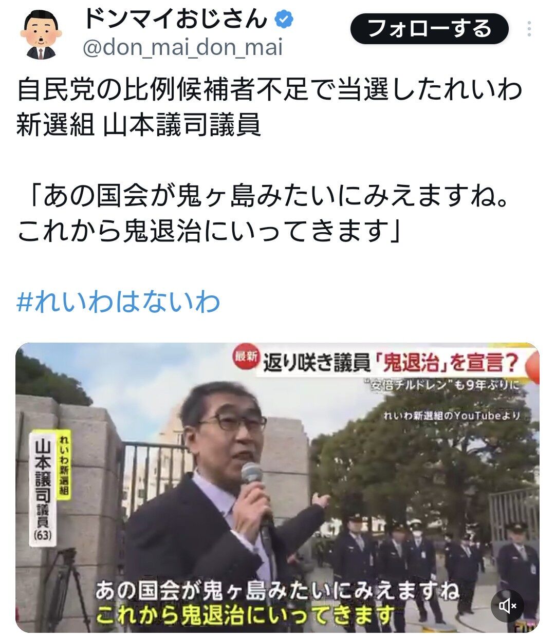 元俳優の民間人の山本さんが国会まで何しに?