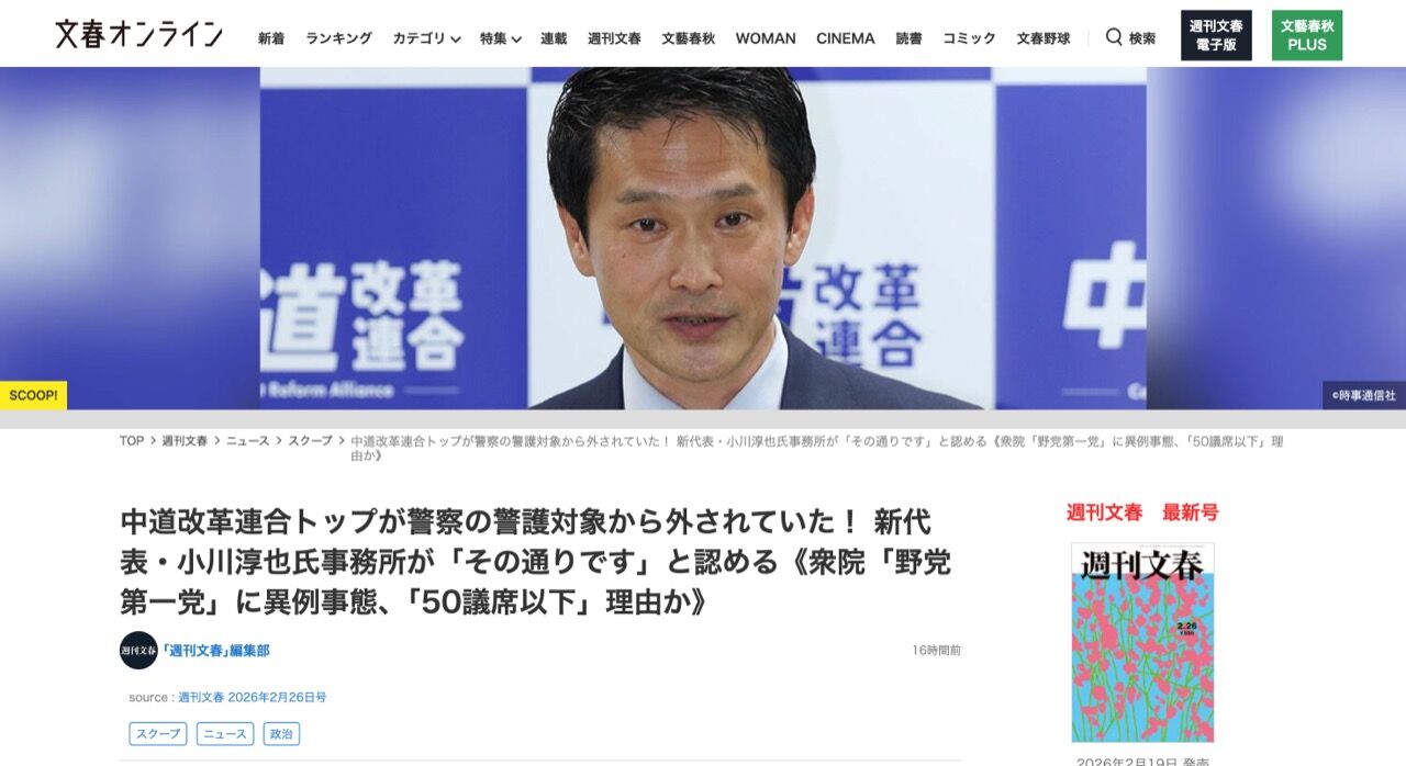 中道改革連合トップが警察の警護対象から外されていた! 新代表・小川淳也氏事務所が「その通りです」と認める《衆院「野党第一党」に異例事態、「50議席以下」理由か》 | 文春オンライン