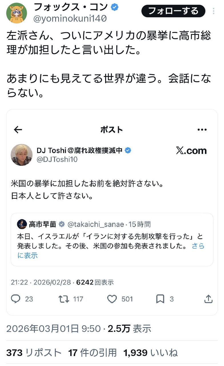 アメリカがイラン攻撃したのは高市のせいwwwwww