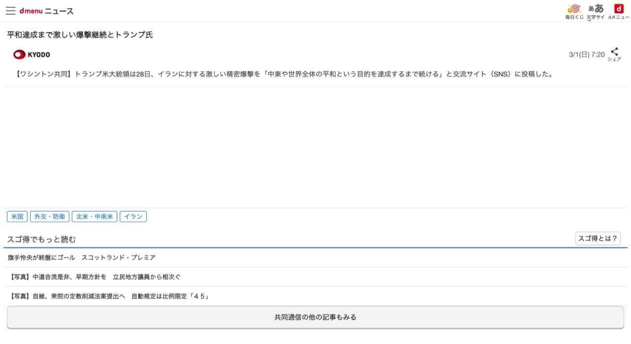 平和達成まで激しい爆撃継続とトランプ氏 https://topics.smt.docomo.ne.jp/article/kyodo_nor/world/kyodo_nor-2026030101000227