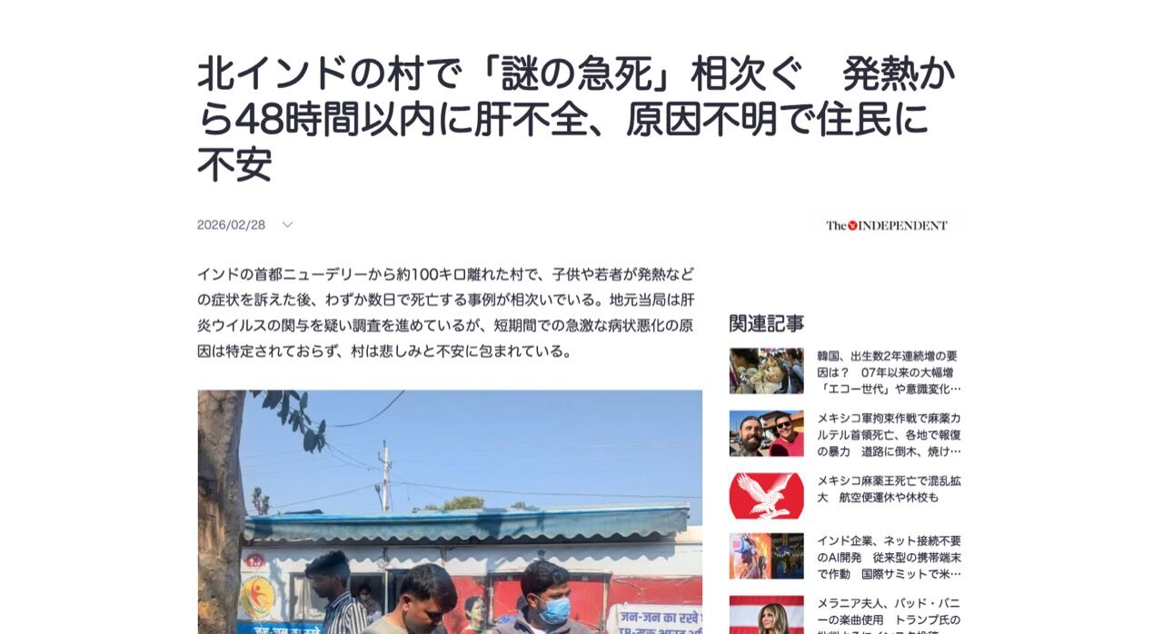 北インドの村で「謎の急死」相次ぐ 発熱から48時間以内に肝不全、原因不明で住民に不安
