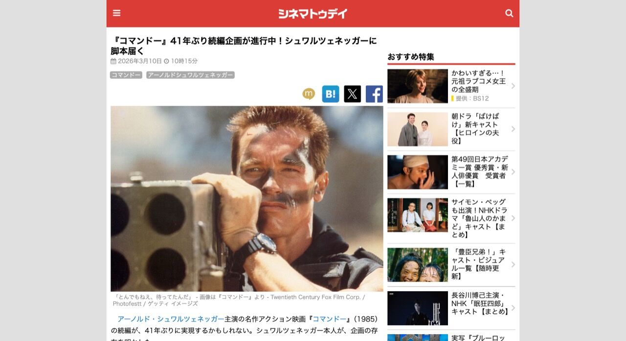 『コマンドー』41年ぶり続編企画が進行中!シュワルツェネッガーに脚本届く|シネマトゥデイ