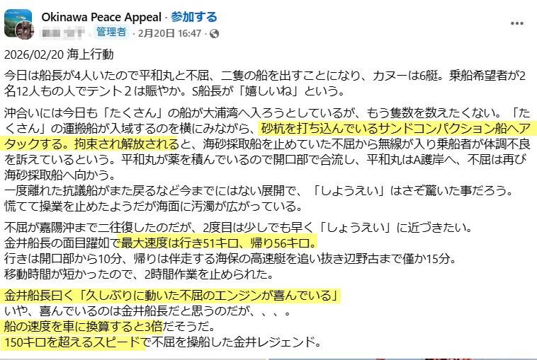 沖縄・辺野古転覆事故で、死亡した金井創船長(71)が、「辺野古の海の危険性」を認識していたことが分かった。自著『沖縄・辺野古の抗議船『不屈』からの便り』(みなも書房)に、「船を走らせるとなると本当に怖い海」などと記していた。転覆した抗議船「不屈」についても操船の難しさを明かしていた。