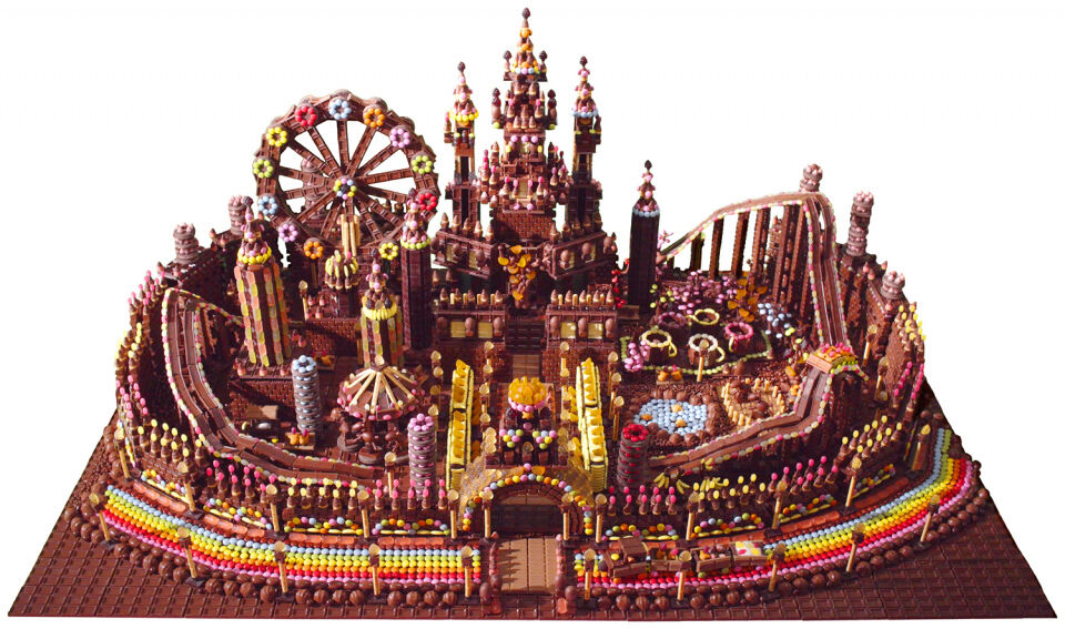 総重量110キロ超、幅180センチ×奥行120センチという圧倒的スケールで楽しむ「お菓子の遊園地キット」が14日午前10時より予約開始される。昨年即日完売した「お菓子で作る大きな大きなお城キット」に続く第2弾として、お菓子の量を増やし、遊園地をテーマにしたコンセプトで登場した。