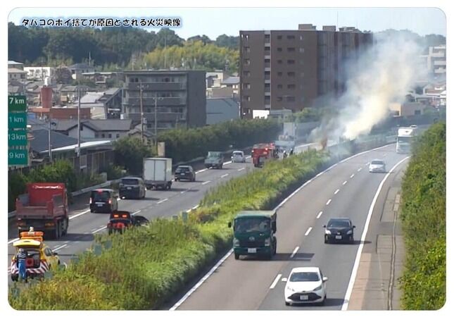 「これは酷い」「あり得ない」高速道路でタバコポイ捨て→火災に発展 NEXCOの衝撃動画...公開の狙いは