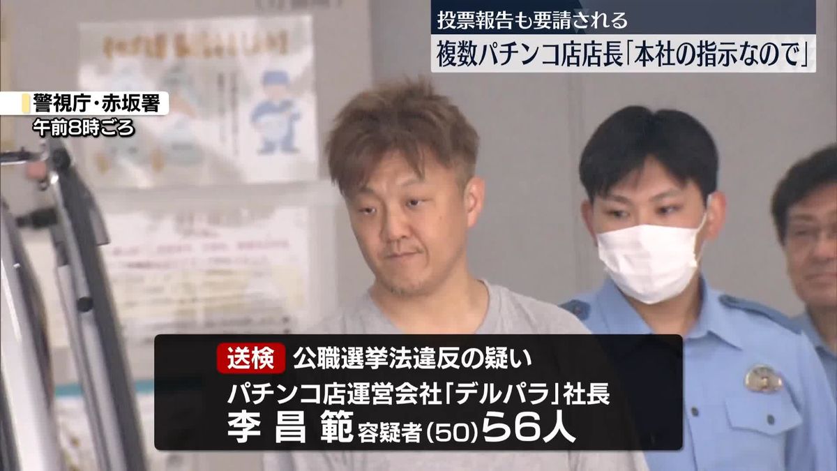 7月の参院選で、自社の従業員に対し、自民党公認候補だった阿部恭久氏(66)への投票の見返りに現金を渡す約束をした公選法違反(買収約束)の疑いで、警視庁などが26日、パチンコ店運営会社「デルパラ」(東京都港区)の社長で韓国籍の李昌範容疑者(50)=港区=ら同社幹部6人を逮捕した、と各社が報じた。