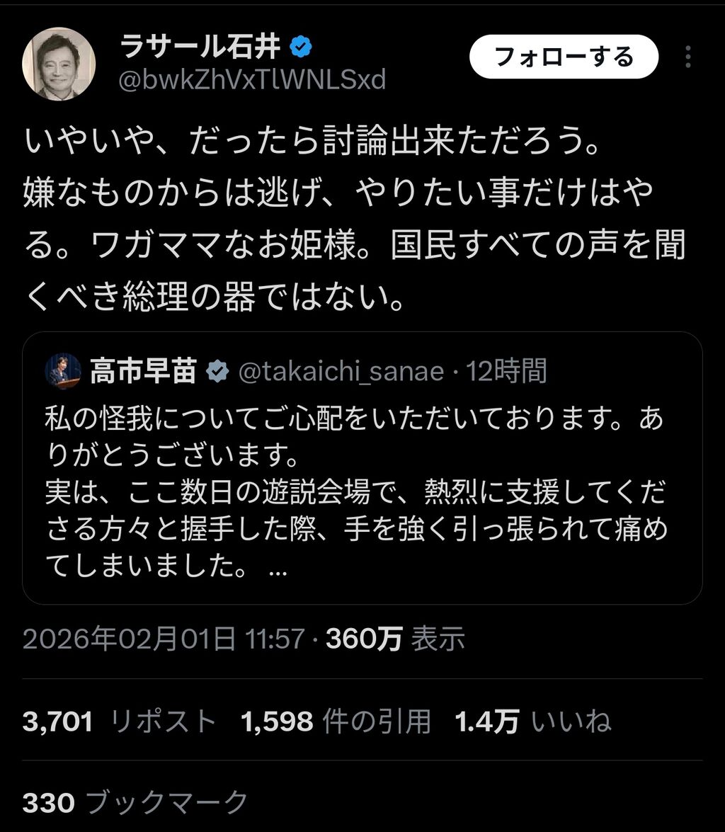 松陰寺から責めこまれ、しどろもどろになりながらも、中国や北朝鮮の軍拡という“目の前の脅威”には踏み込まず、日本が悪いという話に終始していたラサールに対し、Xでは