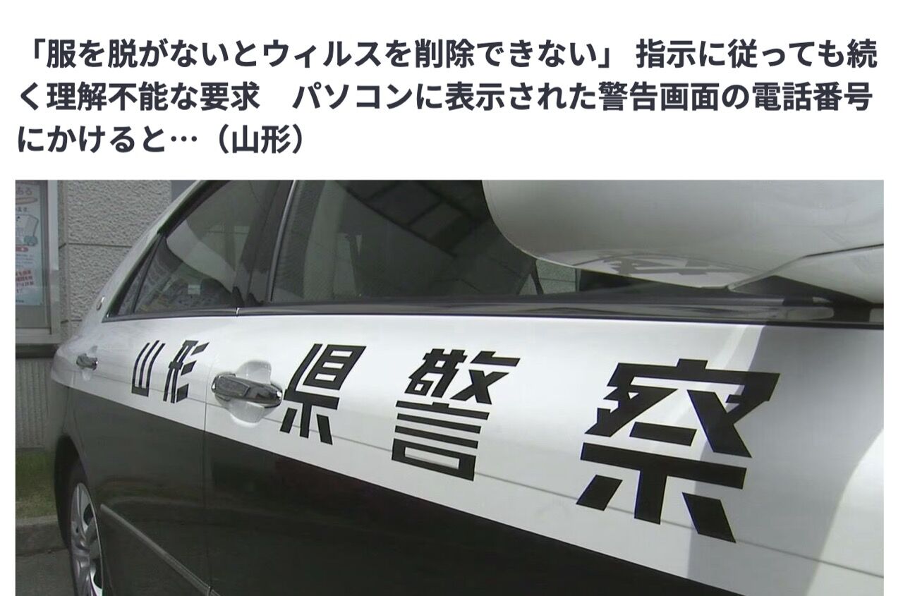 「服を脱がないとウィルスを削除できない」 指示に従っても続く理解不能な要求 パソコンに表示された警告画面の電話番号にかけると…(山形) | 山形のニュース│TUYテレビユー山形 (1ページ)