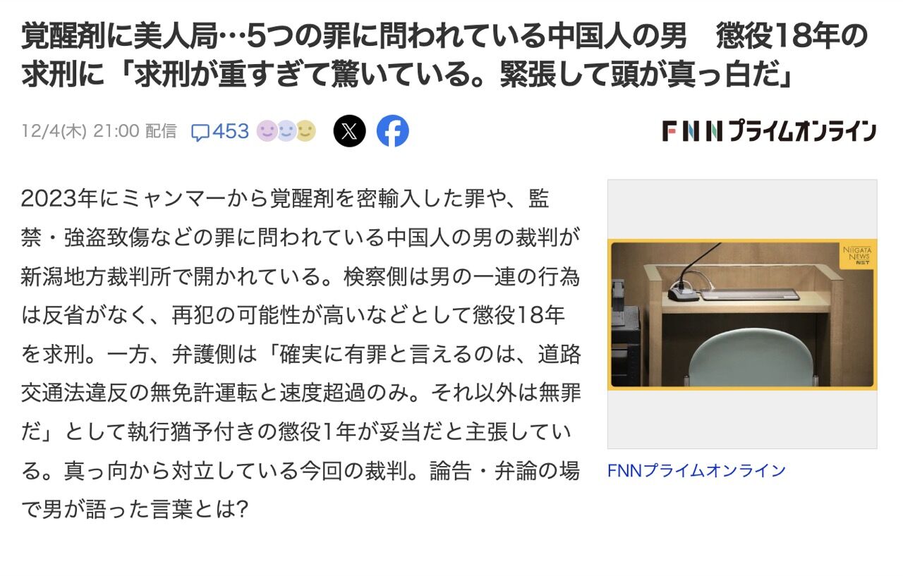薬物犯罪は本国では死刑だぞ