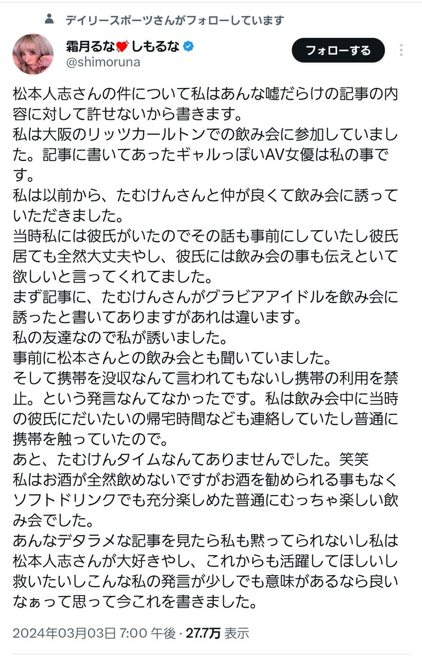— 霜月るな💖しもるな (@shimoruna) March 3, 2024