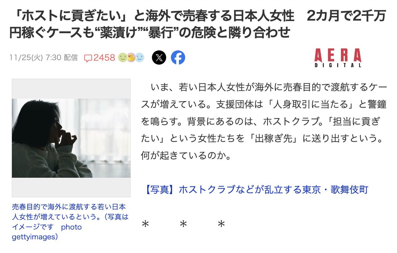 「売春目的で、海外に渡航する若い日本人女性が増えています」