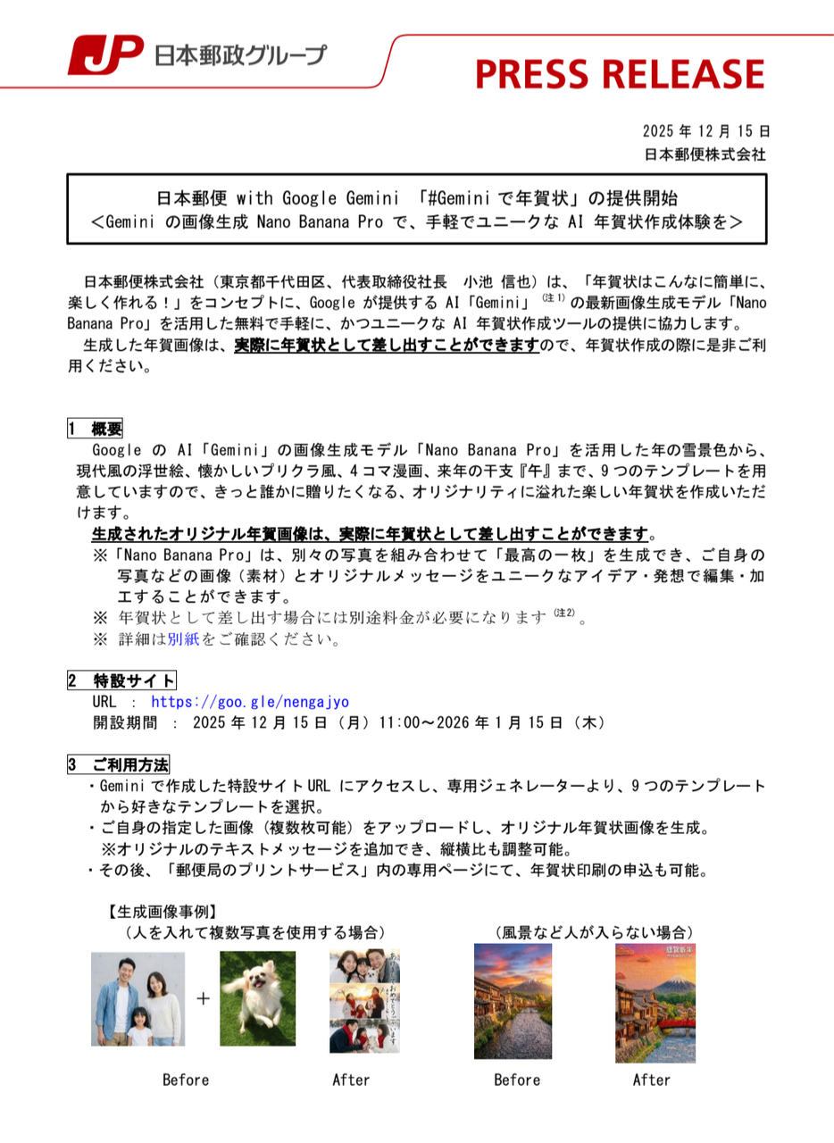 そんな課題を解決しようと、日本郵便がGoogleと連携して令和ならではの新サービス「#Geminiで年賀状」を展開します。