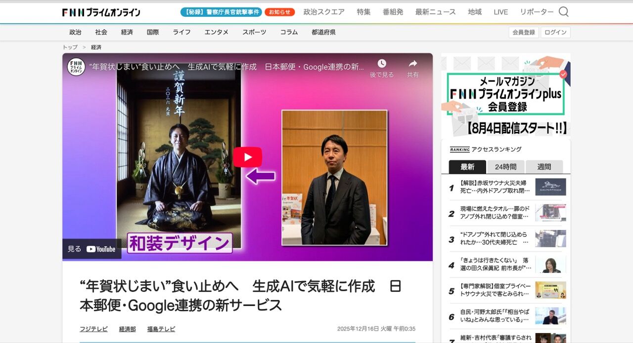 “年賀状じまい”食い止めへ 生成AIで気軽に作成 日本郵便・Google連携の新サービス|FNNプライムオンライン