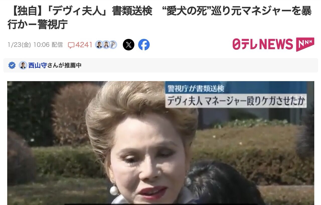 マネージャーの女性が、デヴィさんの飼い犬が体調不良になったため、動物病院を訪れましたが、飼い犬は死に、駆けつけたデヴィさんが病院側に文句を言い出したため、仲裁に入ったマネージャーに暴行を加えたとみられています。