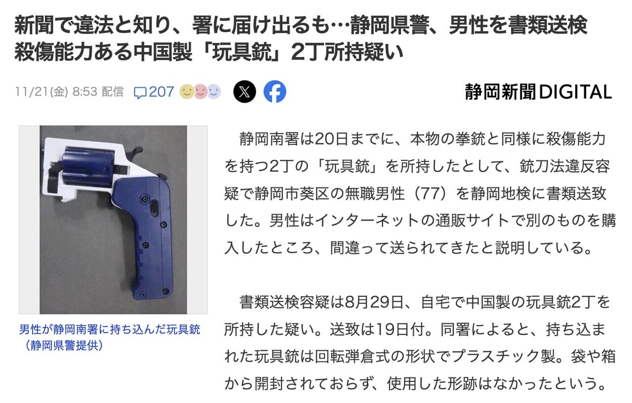 実弾発射可能なおもちゃ銃、出回った1万5800丁の回収進まず