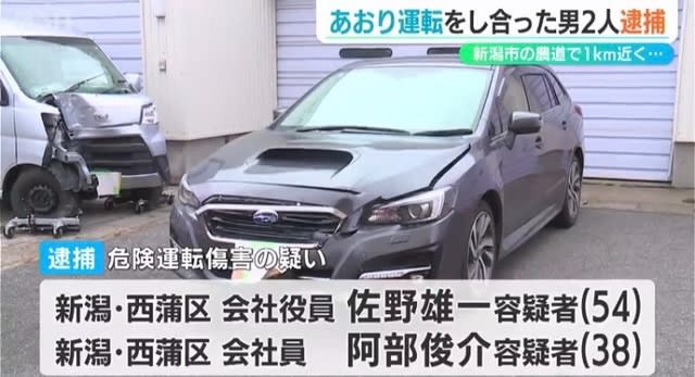 新潟市西蒲区の農道で互いにあおり運転をして衝突事故を起こし、相手にケガをさせたとして、それぞれの車を運転していた男2人が逮捕されました。