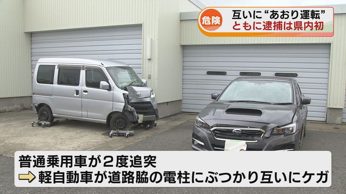 互いにあおり運転をした末に、普通乗用車が2度追突…軽自動車が道路脇の電柱にぶつかり、互いにケガをさせたとして、ともに危険運転致傷の疑いが持たれています。