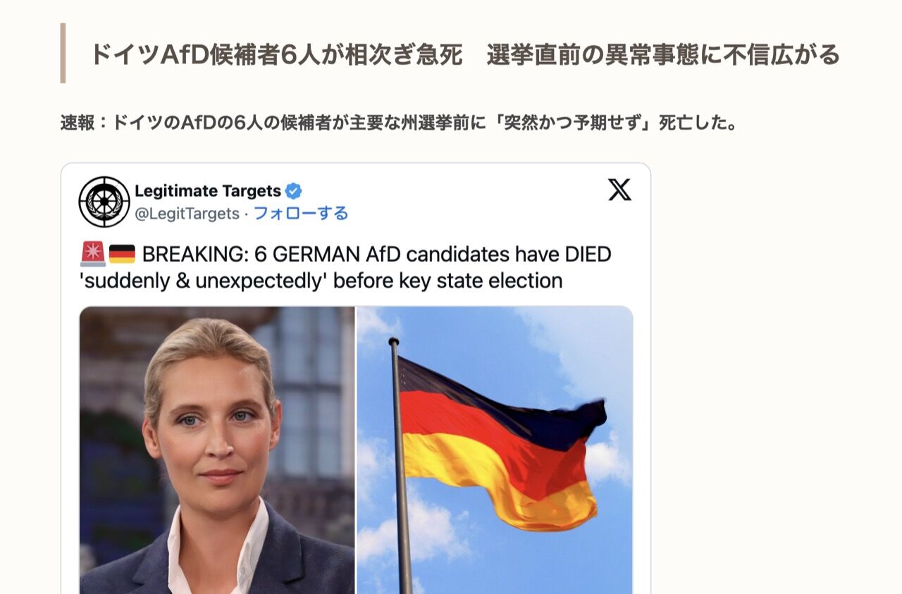 ドイツ最大州で選挙直前に、保守政党AfDの候補6人が相次ぎ突然死 学者「統計的に不可能に近い」 | Total News World